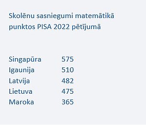 1. tabula. Skolēnu sasniegumi PISA 2022 testos.