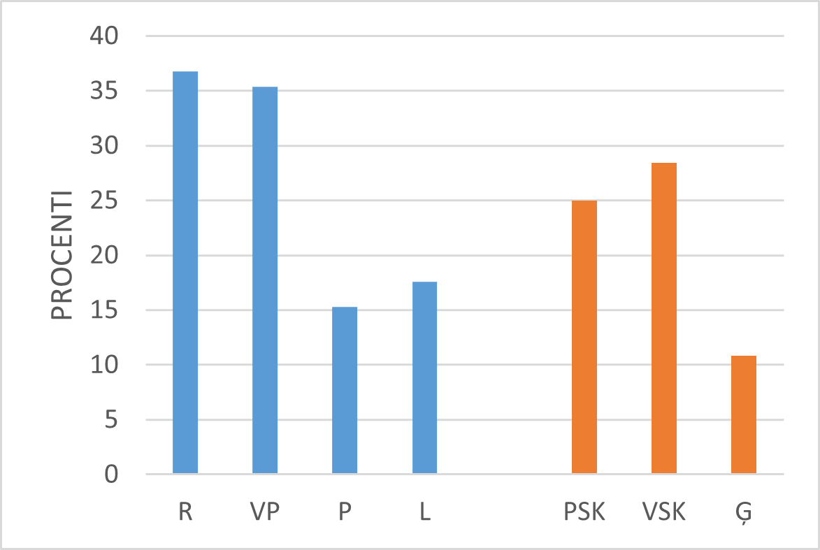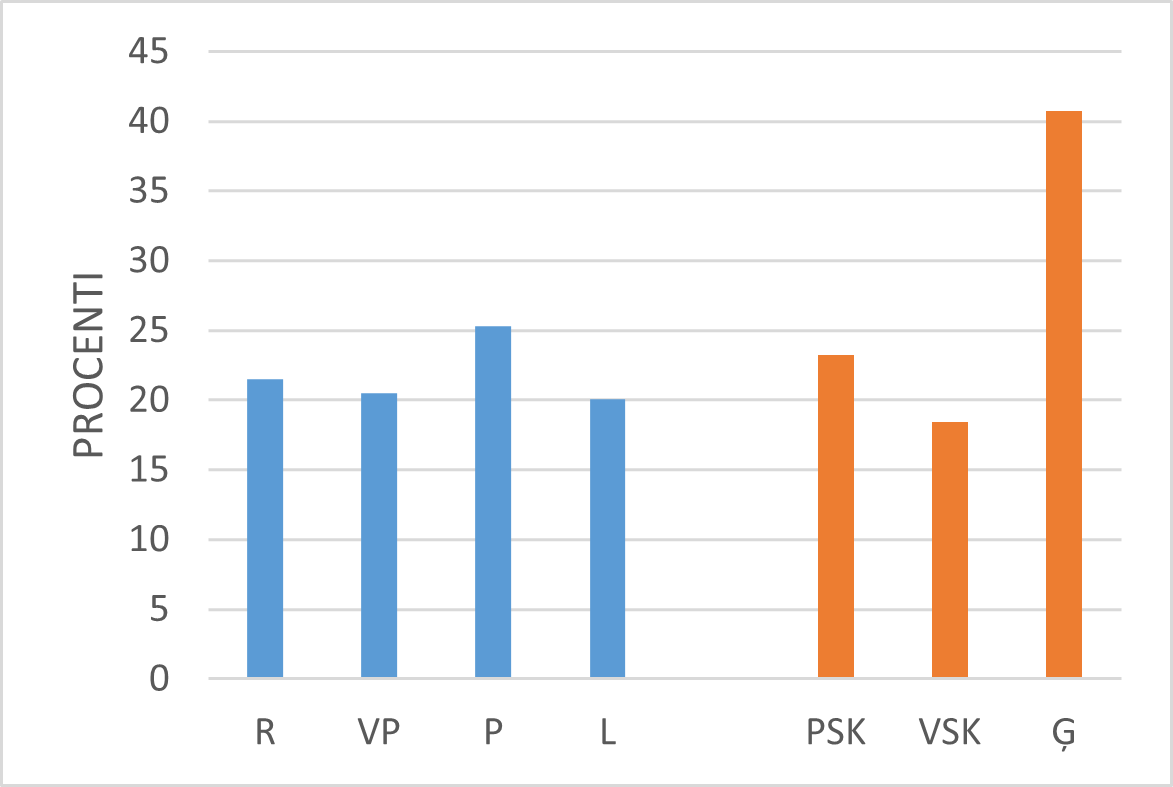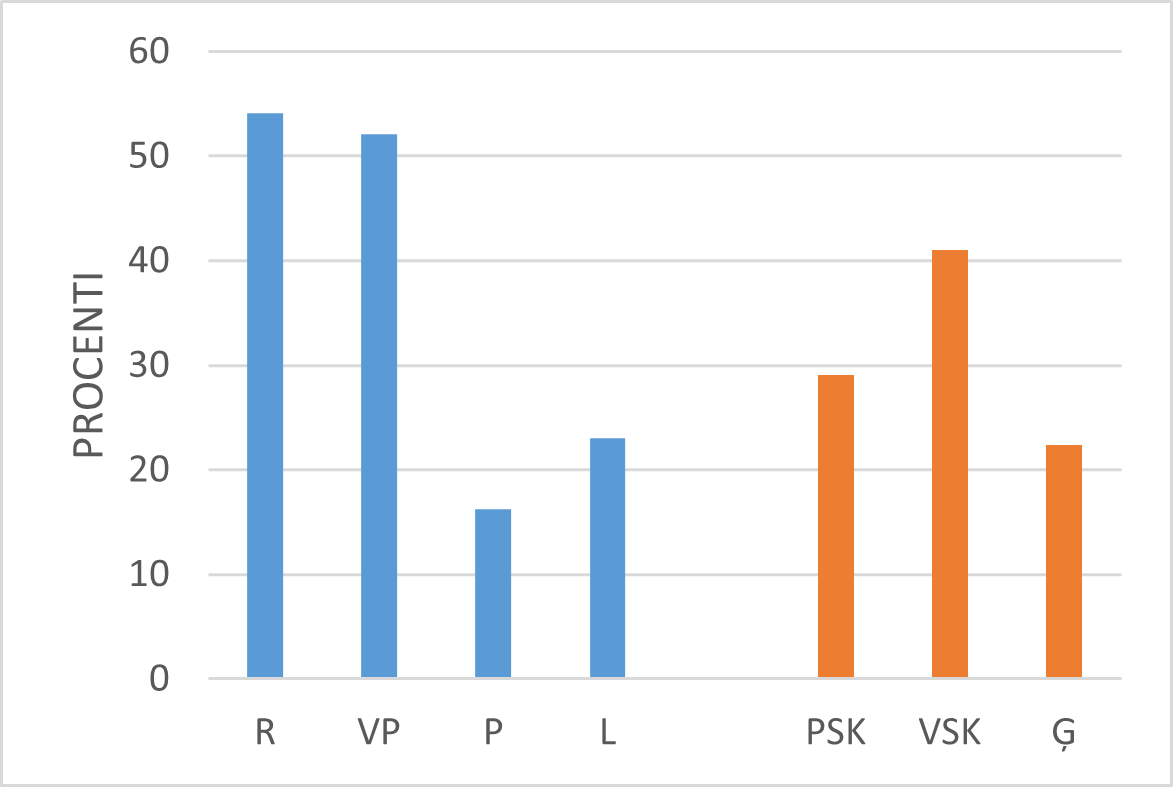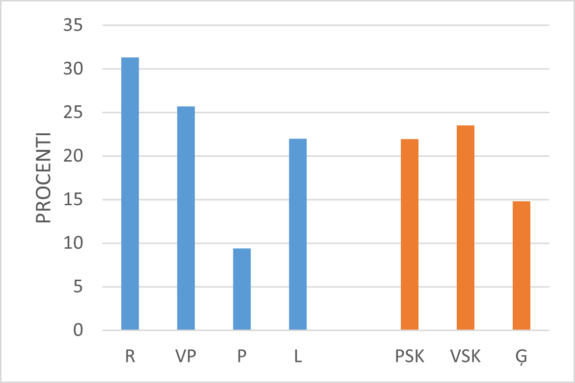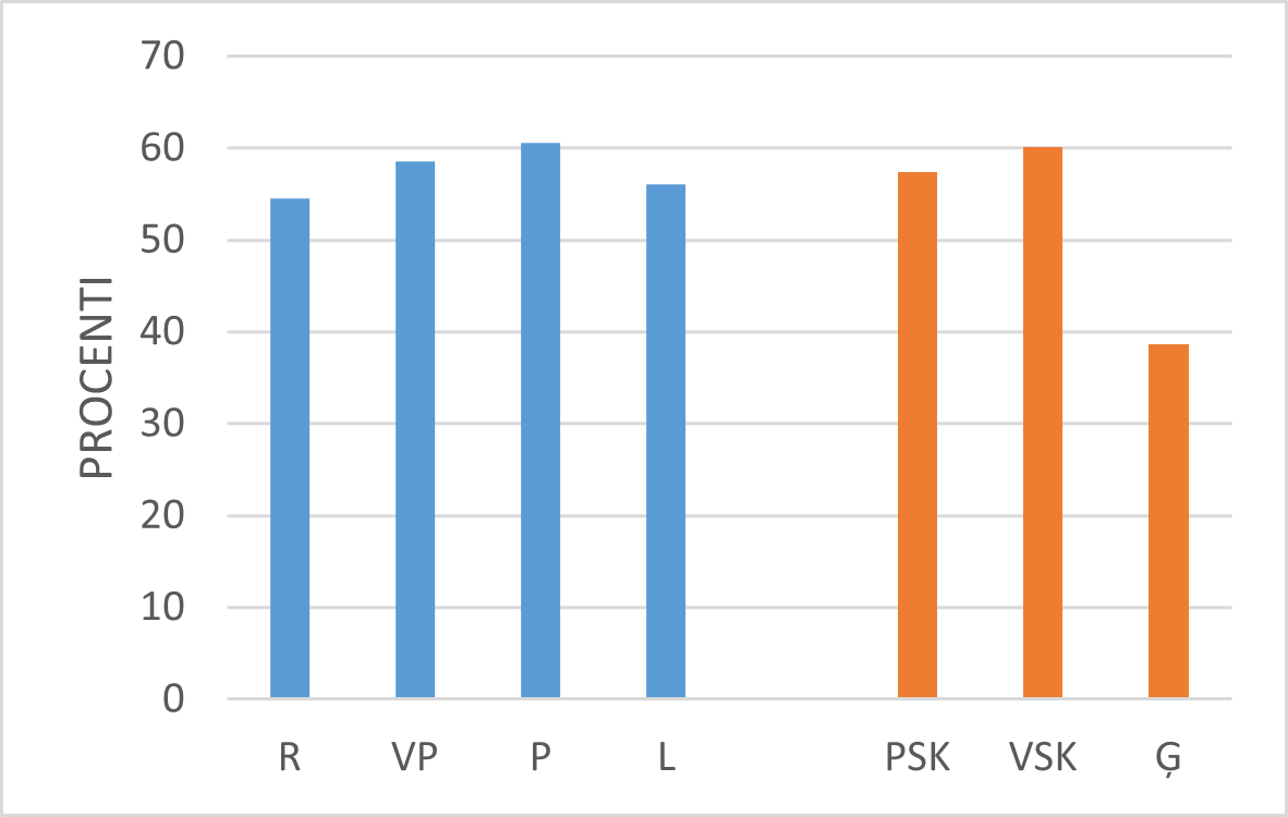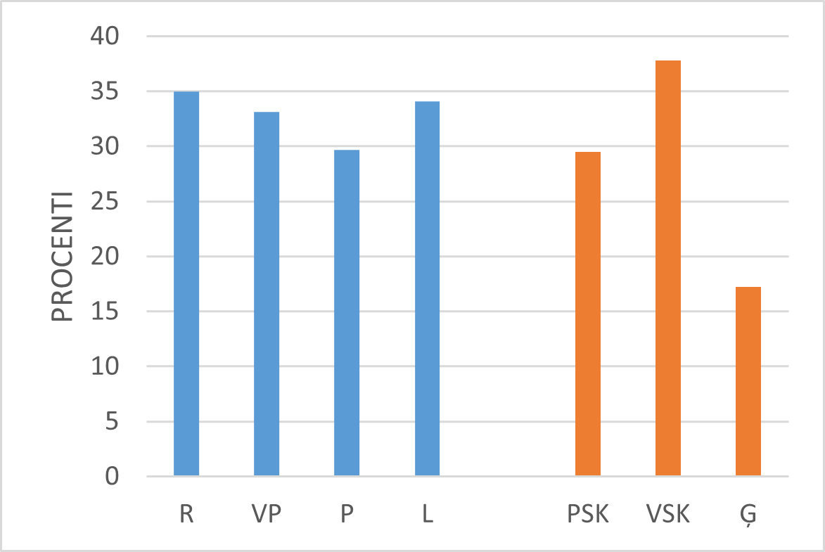 Aplūkojot skolotāju kognitīvās aktivācijas darbības Latvijā, jāsecina, ka mazāk tās izpaužas ģimnāzijās (skat. 34.–35. att.).