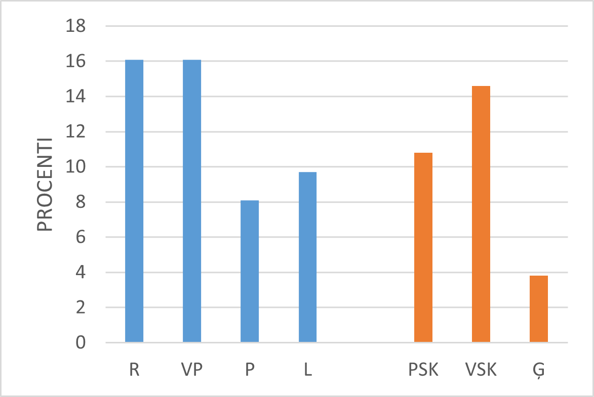 12. att. Skolotāju daļa procentos, kuriem skolotāja profesija ir otrā karjera