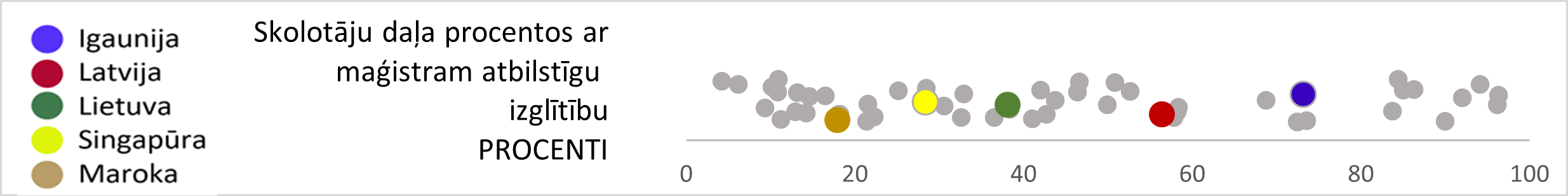 Augsti kvalificētu un motivētu kandidātu piesaistīšana skolotāja profesijai ir galvenā politikas prioritāte daudzās valstīs. Sākotnējās skolotāju izglītības prasības dažādās valstīs ir ļoti atšķirīgas. TALIS pētījums nesniedz noteiktus datus par nepieciešamo skolotāju sākotnējās izglītības ilgumu vai līmeni, tomēr sākotnējā izglītība parasti ietver mācību priekšmeta specifiskās zināšanas un pedagoģisko apmācību. Izpratne par sākotnējās skolotāju apmācības prasībām un dažādajiem tās iegūšanas ceļiem ir ļoti svarīga, lai izpētītu, kā cilvēki kļūst par skolotājiem. Augstāks terciārās izglītības līmenis ne vienmēr ir vienīgais sviras faktors politikas veidotājiem. Ir būtiski panākt līdzsvaru starp pieejamiem izglītības iegūšanas ceļiem. 2024. gadā vidēji 57 % skolotāju bija ieguvuši maģistra grādu vai līdzvērtīgu izglītību (Starptautiskajā standartizētajā izglītības klasifikācijā – ISCED 7). Horvātijā, Somijā, Polijā, Portugālē un Slovākijā šis skaitlis pārsniedz 90 %, Igaunijā tie ir 73 %, Latvijā – 58 %, Lietuvā – 38 %, Singapūrā – 29 % un Marokā – 18 %. Latvijā iespējams izdalīt skolotājus, kuru izglītība atbilst maģistra grādam un kuri ir ieguvuši maģistra grādu (skat. 9.–11. att.). Latvijā augstāk kvalificēti skolotāji strādā Rīgā un valstspilsētas, īpaši tas attiecas uz maģistra grādu ieguvušajiem.
